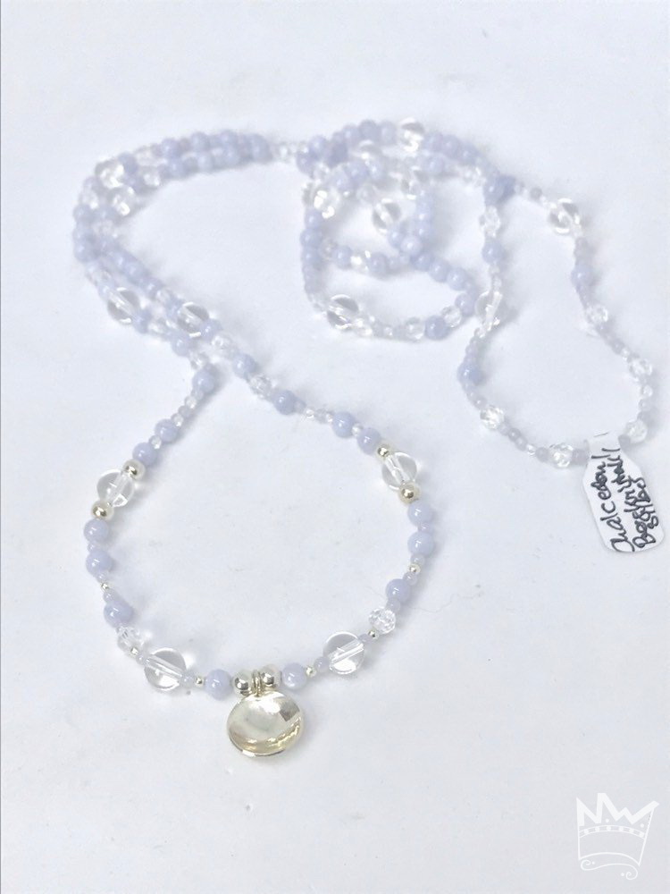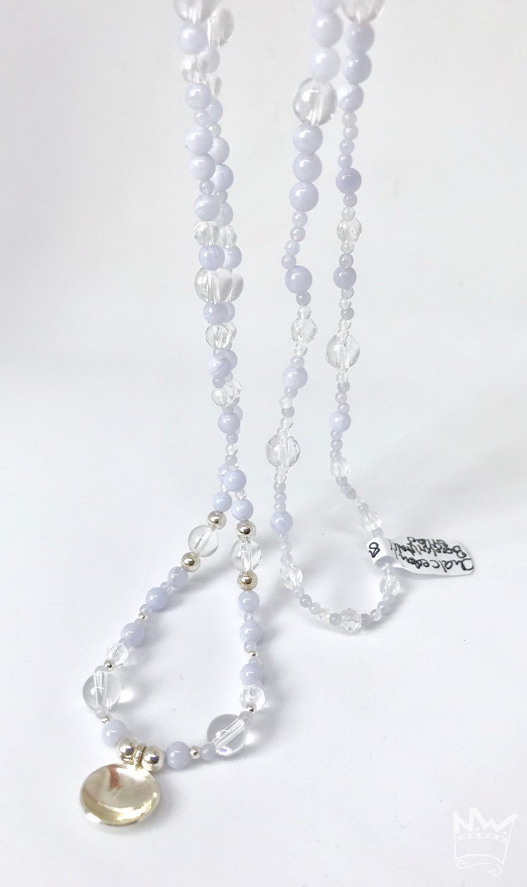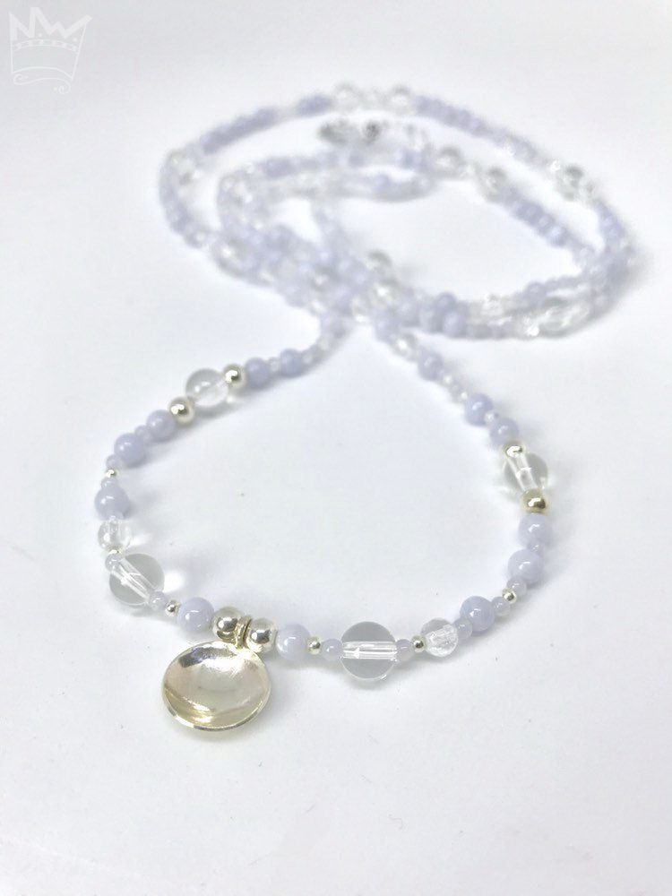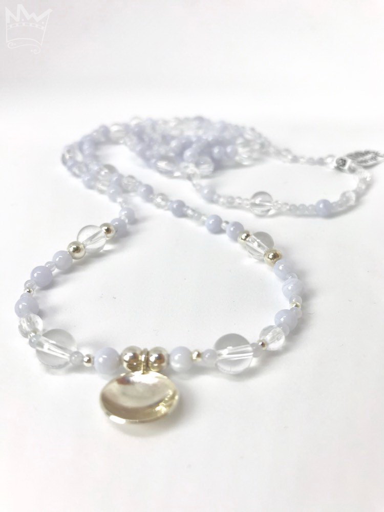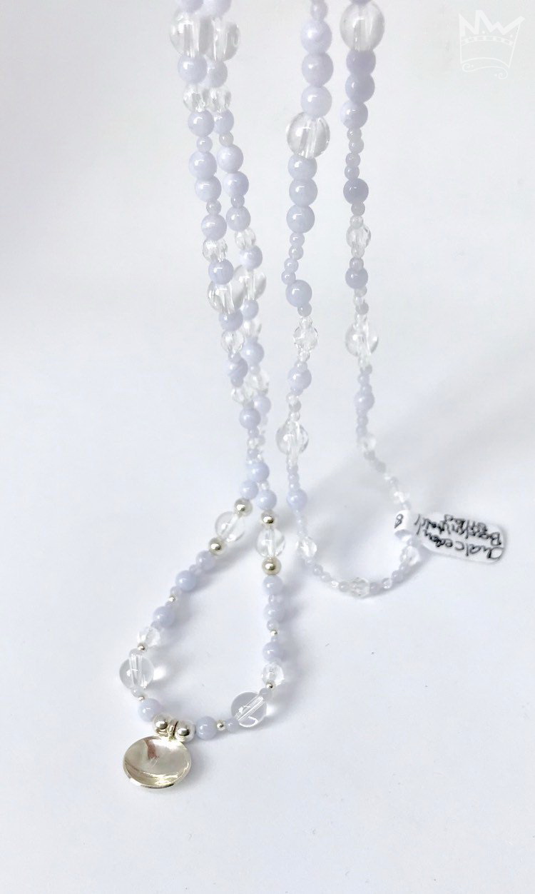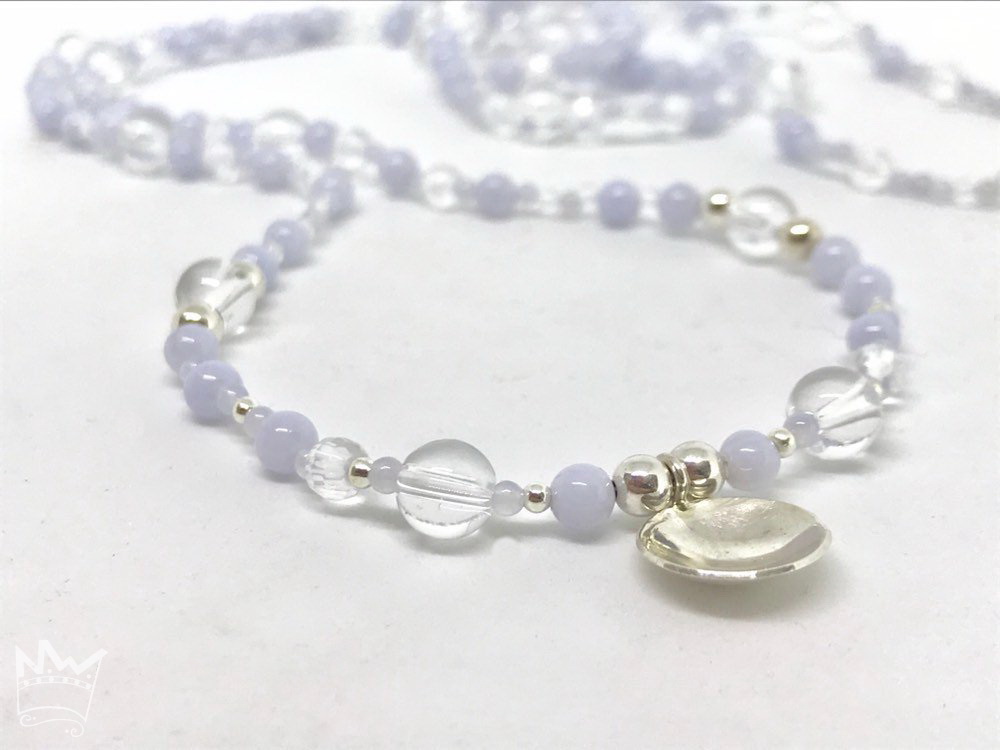 Eine bezaubernde, lange Kette aus Chalcedon und Bergkristallperlen.