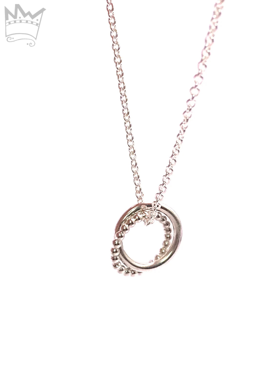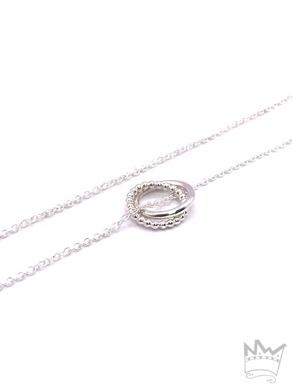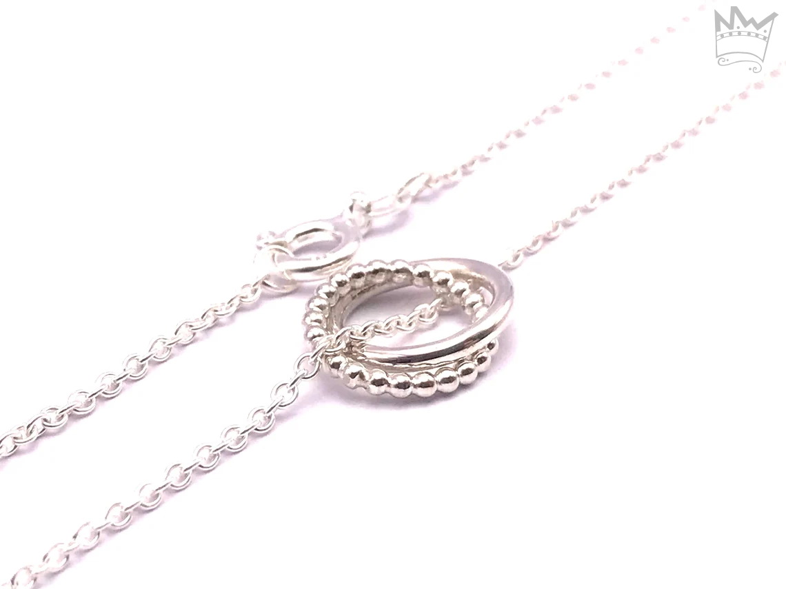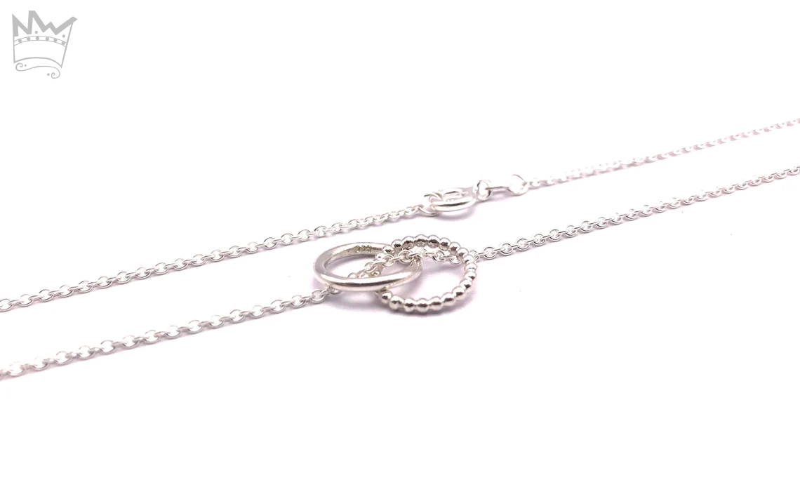 Eine zarte Gliederkette mit 2 in sich verschlungenen Ringchen. Alles ist massiv in Sterlingsilber gearbeitet und NICHT versilbert !!