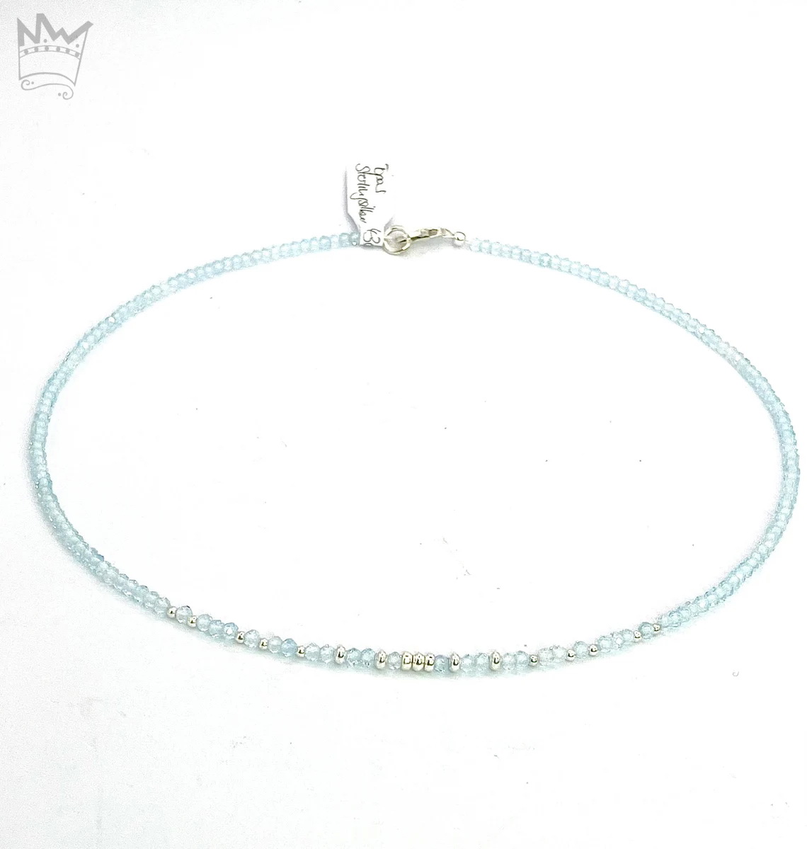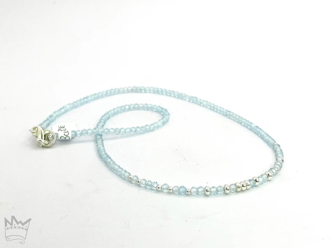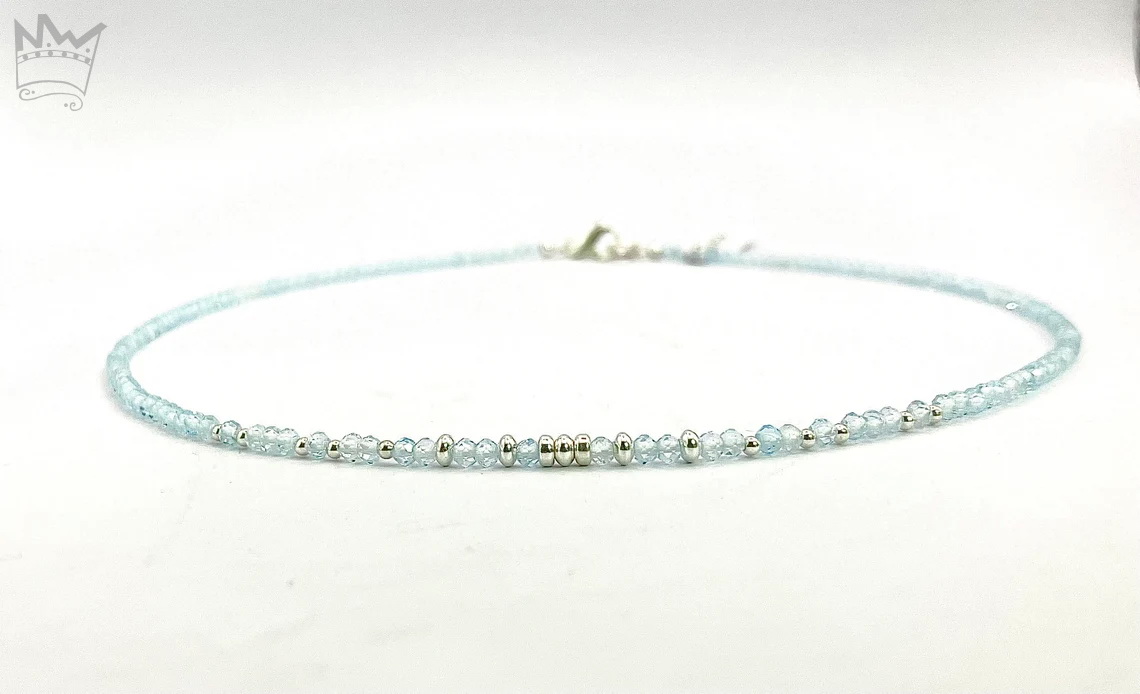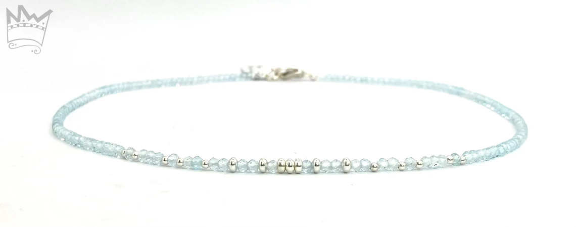 Eine feine, zarte Kette aus 3 mm facettierten Topasrondellen mit eingearbeiteten Silberelementen.
