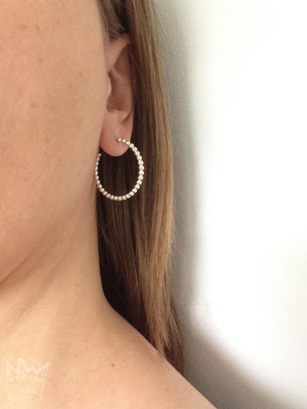 Eine runde Creole, in Form eines Kugelrings, der hinten geöffnet ist und funktioniert wie ein Ohrstecker und somit kinderleicht in der Handhabung ist.