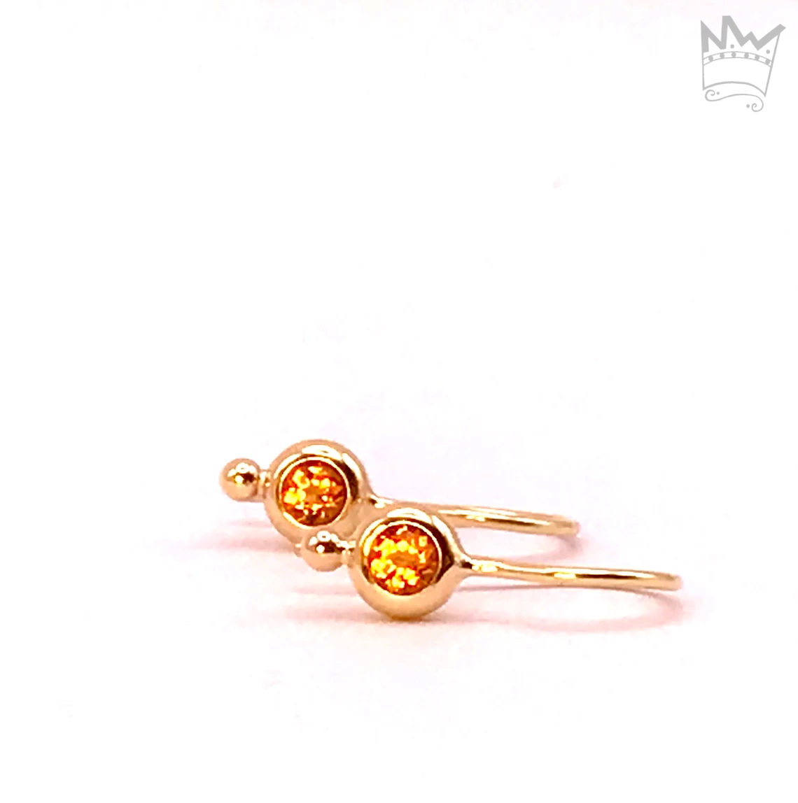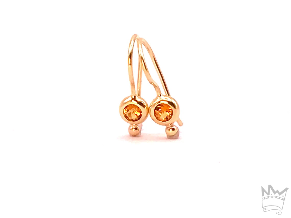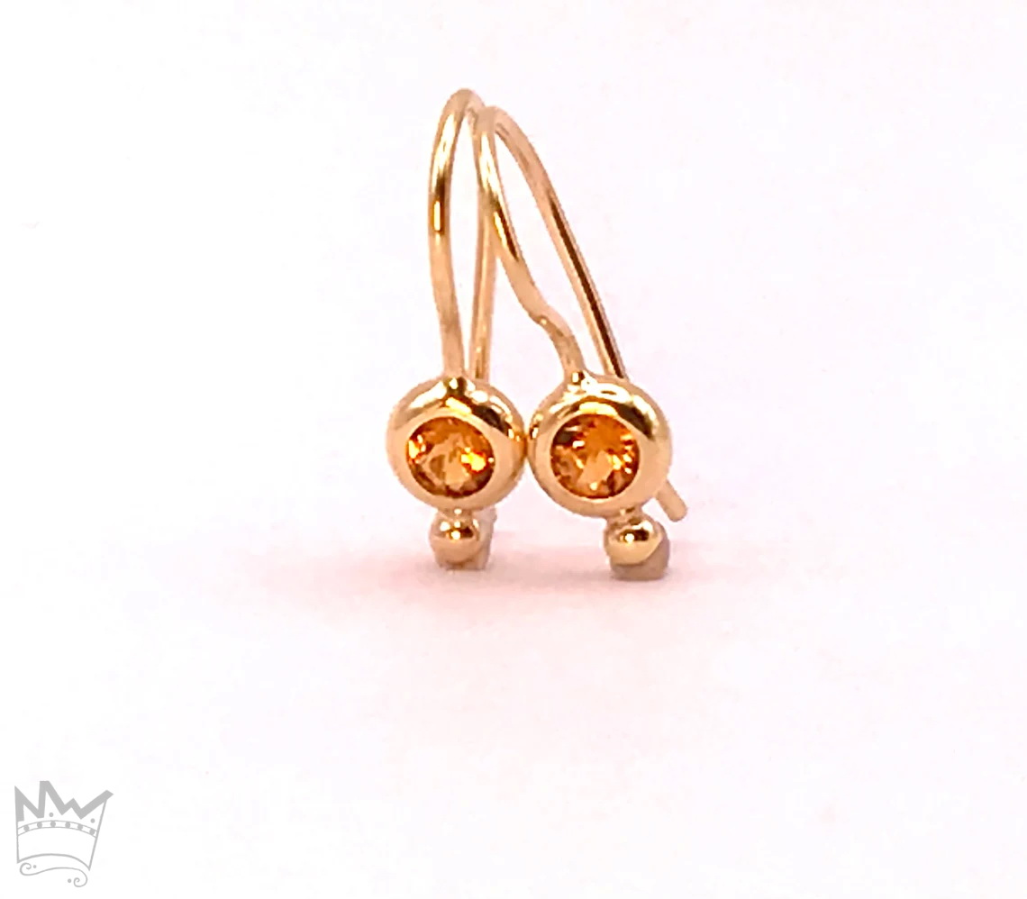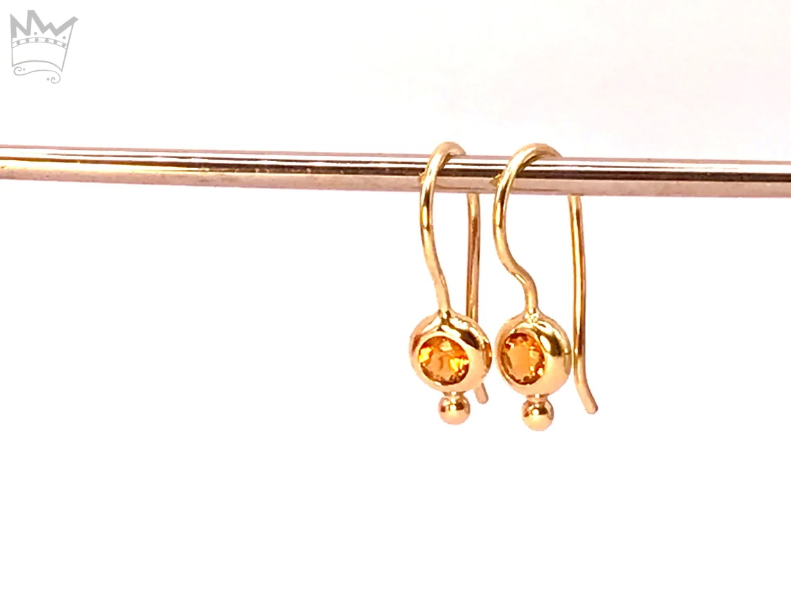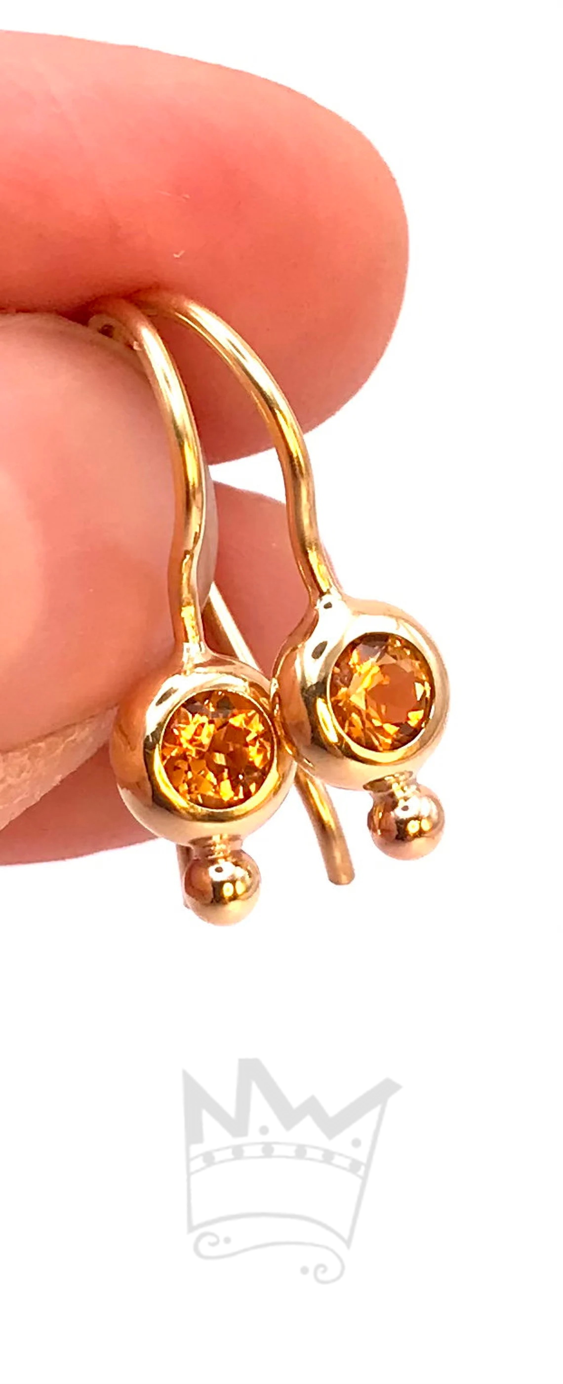 Ein zartes Ohrhängerpaar mit 2 sonnengelben, facettierten, runden Zitrinen, die mit der Sonne um die Wette stahlen !! Sowohl die bauchige Fassung als auch die Ohrhaken sind massiv aus 750 Gelbgold gearbeitet und NICHT vergoldet !