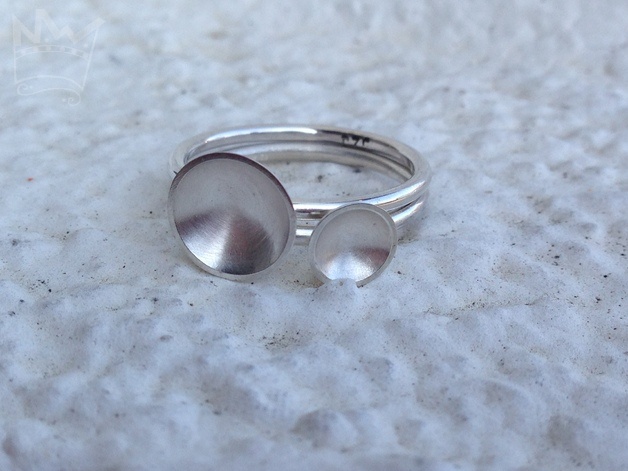 Zwei zarte Silberringe mit jeweils einer Silberschale, die innen mattiert und an der feinen Kante glänzend poliert sind.