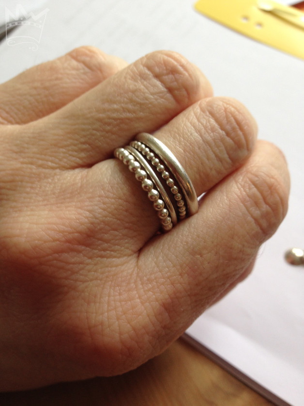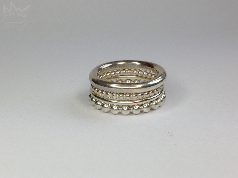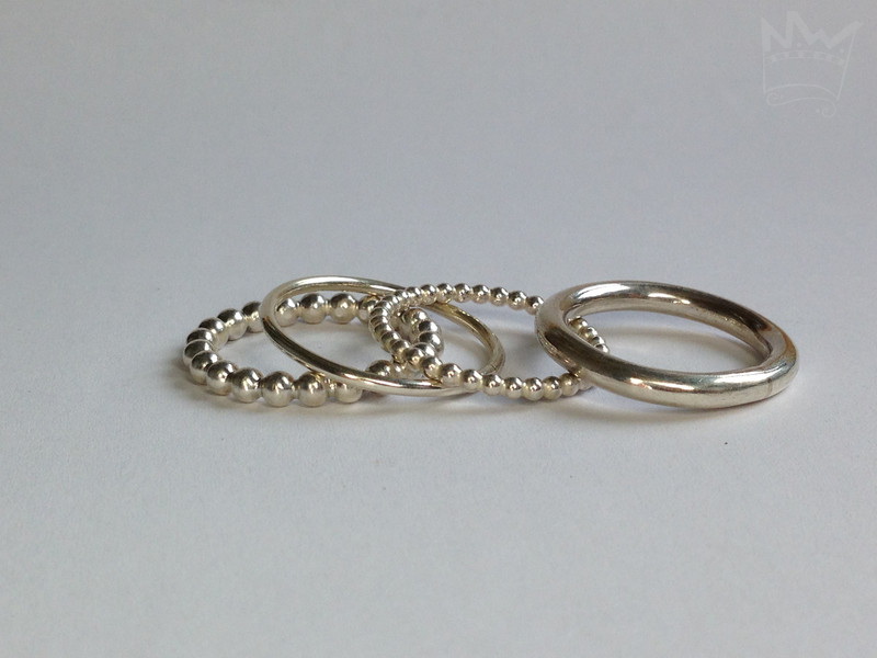 Ein zauberhaftes 4er Set, bestehend aus 2 glatten Silberringen (3mm und 1,5mm) mit einem runden Ringprofil und zwei Kugelringen 3mm und 2mm. Ein wundervolles, lebendiges und glitzerndes Quartett als absoluter Hingucker, das sich nahezu unendlich kombinieren lässt und das sich auch als Vor - oder Zusteckring mit anderen Ringen hervorragend tragen lässt.
