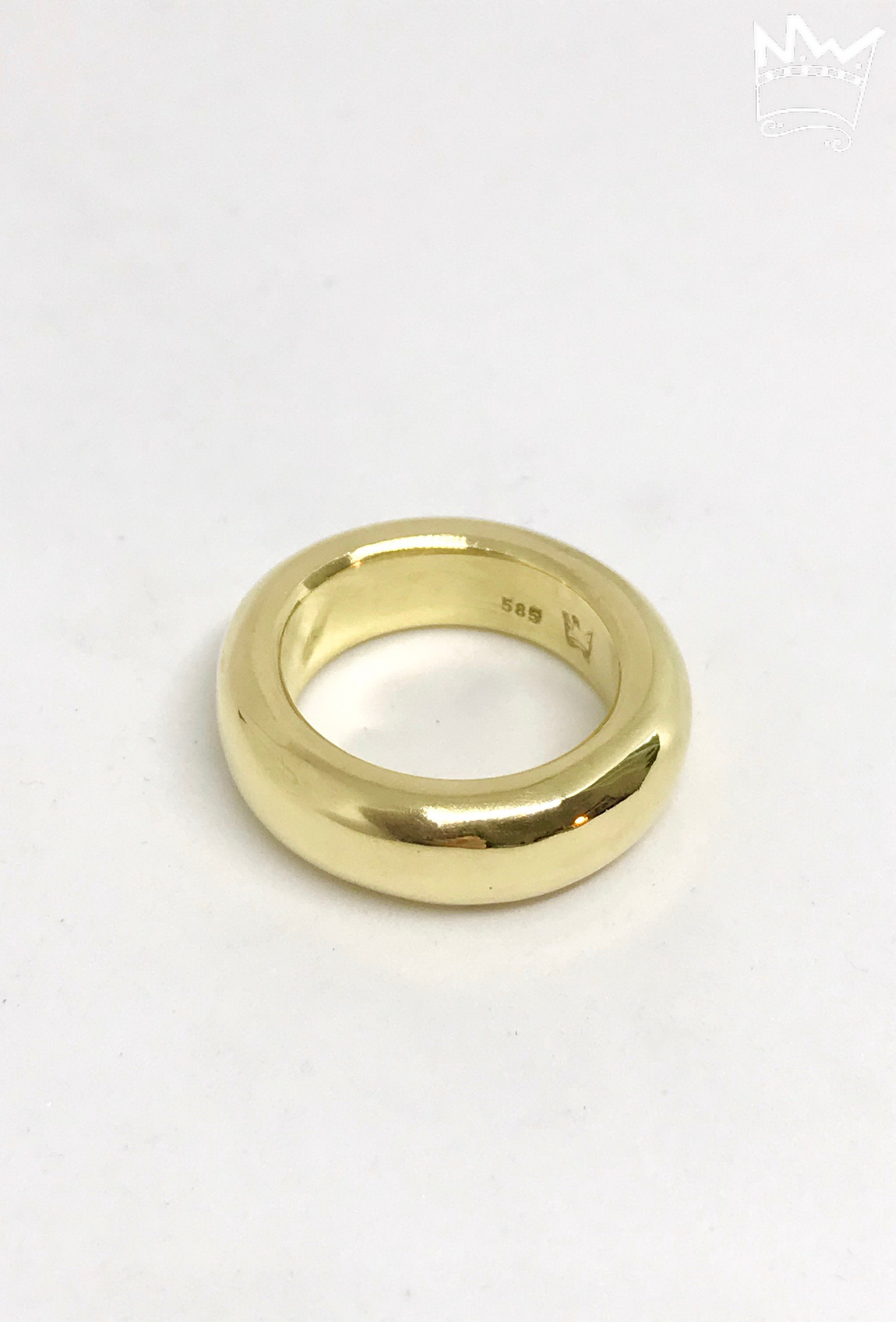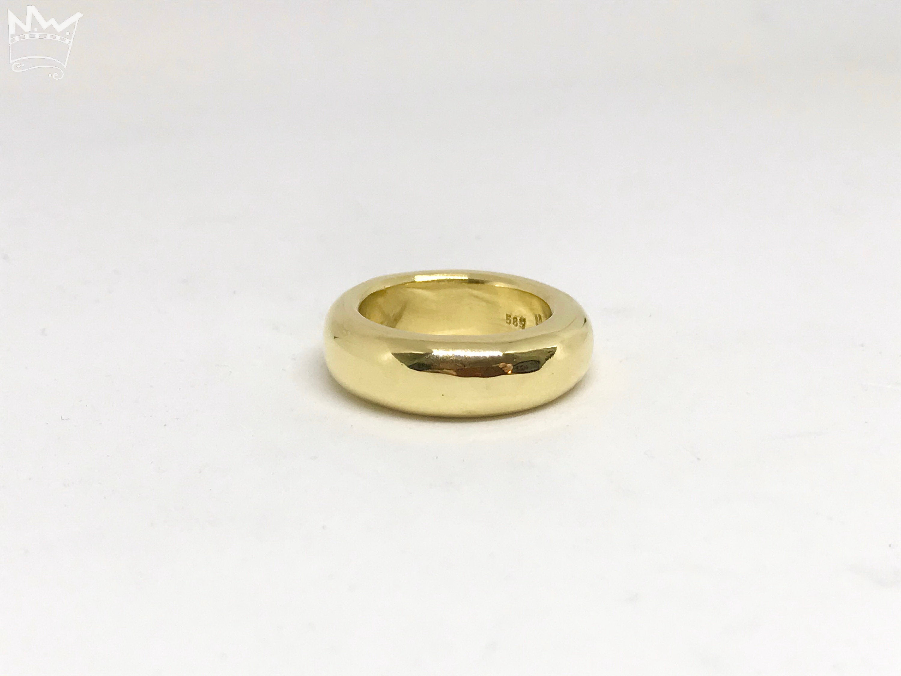 Ein schöner, puristischer und dicker Goldring aus einem Stück in 585er Gelbgold gegossen.