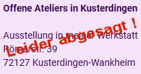 Leider wurden die Offenen Ateliers 2023 vom Veranstalter abgesagt.