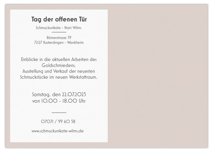 Besuchen Sie mich doch in meiner Werkstatt. Weitere Informationen finden Sie hier! |
